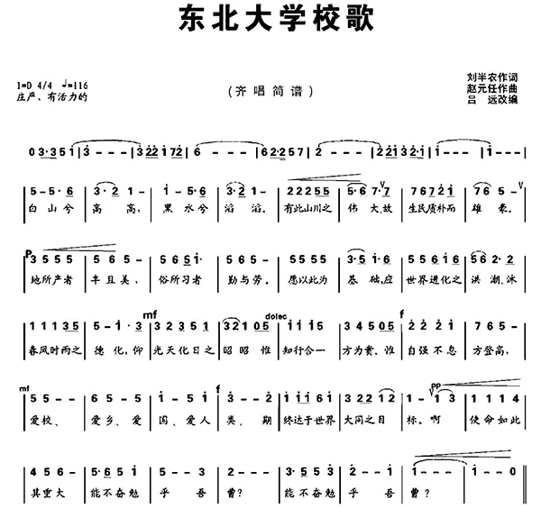 東北大學校標:白山兮,黑水兮……白山黑水是我校校標的主題。校標的原設計是我國國徽的設計者著名建筑學家林徽因教授于1929的作品。現(xiàn)在的校標在此基礎上做了個別修改,主要是加入了張學良老校長1992年為東大題寫的校名。