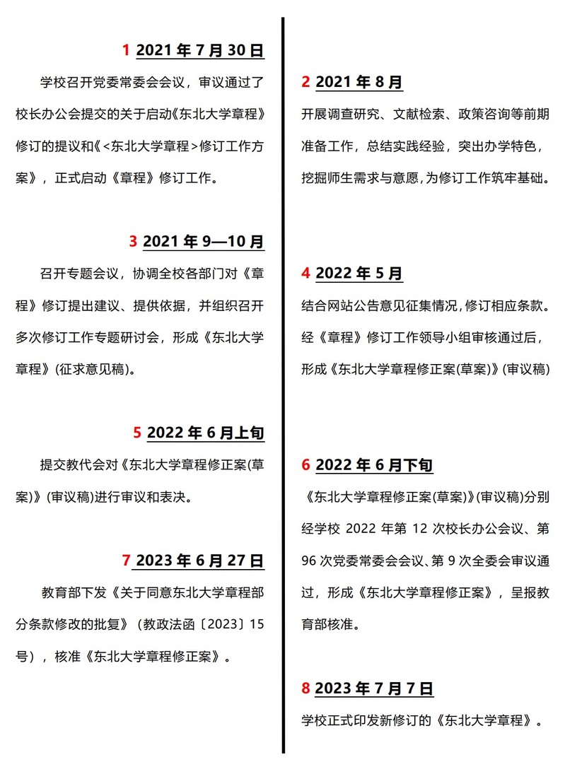 更多...原《東北大學(xué)章程》(以下簡稱《章程》)于2014年6月經(jīng)教育部核準(zhǔn)發(fā)布,經(jīng)過多年實(shí)施,有些條款已不適應(yīng)新時(shí)代黨和國家對(duì)高等教育的新要求。為深入貫徹習(xí)近平新時(shí)代中國特色社會(huì)主義思想,特別是習(xí)近平法治思想和習(xí)近平總書記關(guān)于教育的重要論述,貫徹落實(shí)十八大以來黨中央、國務(wù)院就高等教育改革發(fā)展作出的一系列新的決策部署,貫徹落實(shí)全國教育大會(huì)、全國高校思想政治工作會(huì)議等精神,進(jìn)一步提高學(xué)校治理體系和治理能力現(xiàn)代化水平,...