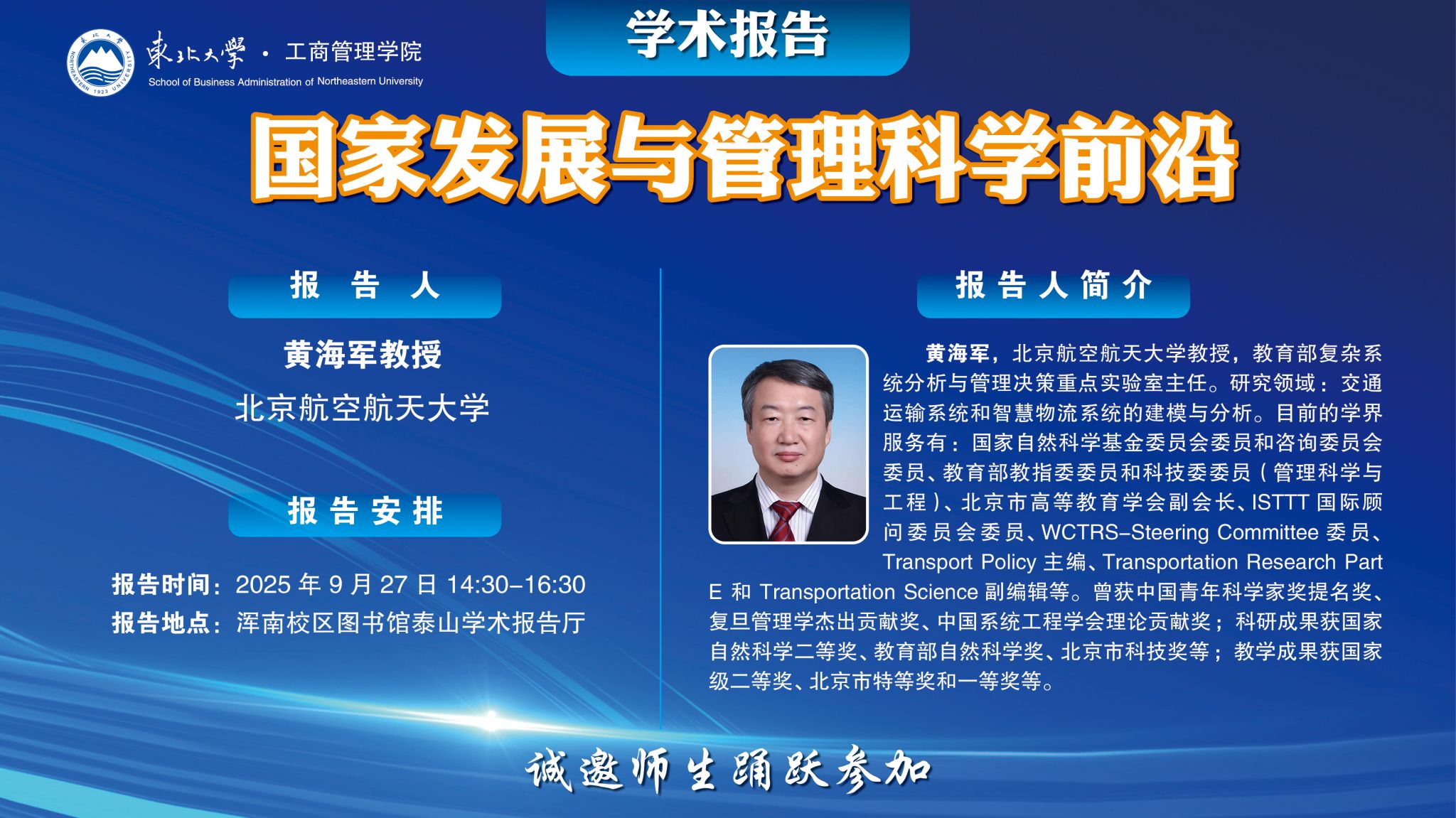 地址:渾南校區圖書館泰山學術報告廳