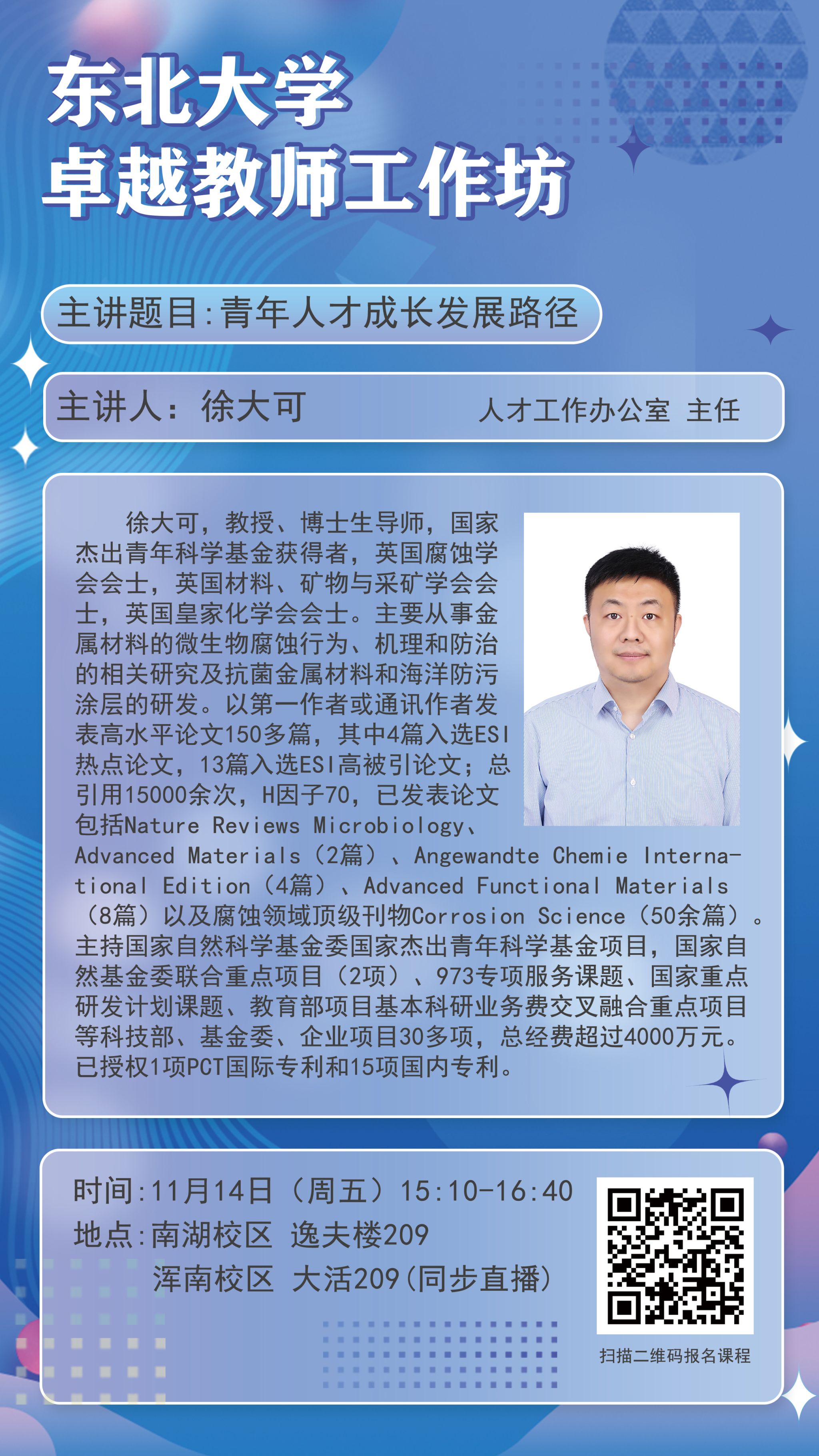 地址:南湖校區(qū)逸夫樓209室、渾南校區(qū)學(xué)生活動(dòng)中心207室(同步直播)